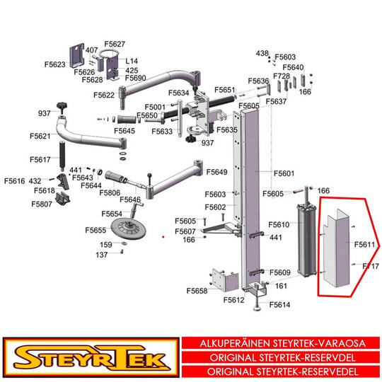 Tämä osa käy valisemaanne koneeseen. Sama osa käy useaan SteyrTek koneeseen, joten räjäytyskuva ei välttämättä ole samasta koneesta.