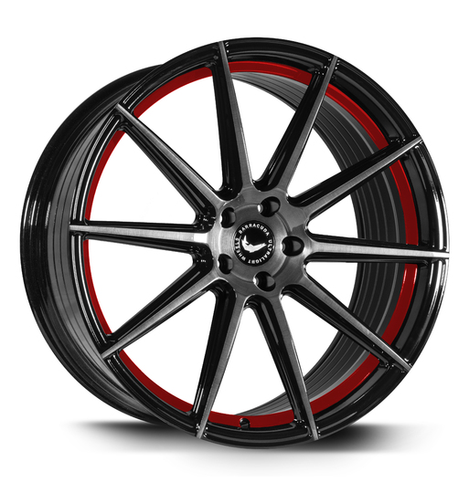 Barracuda PROJECT 2.0 Higloss-Black brushed Surface/undercut Colour trim rot 10.0x22 jako: 5x130 et: 47 Alumiinivanne