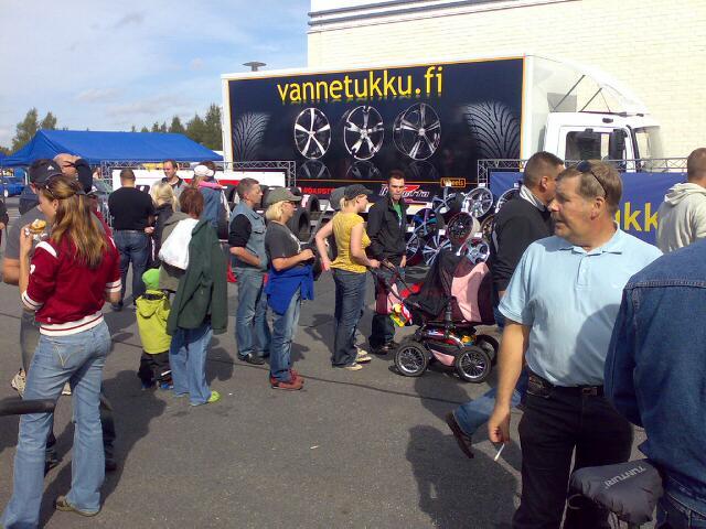 Paikalle oli saapunut myös Vannetukun kiertueauto esitellen makoisampia paloja laajasta valikoimastamme. Autourheiluväen suosikiksi nousikin Barzetan Forza Carbon hiilikuitujäljitelmineen ja punaisine raitoineen.