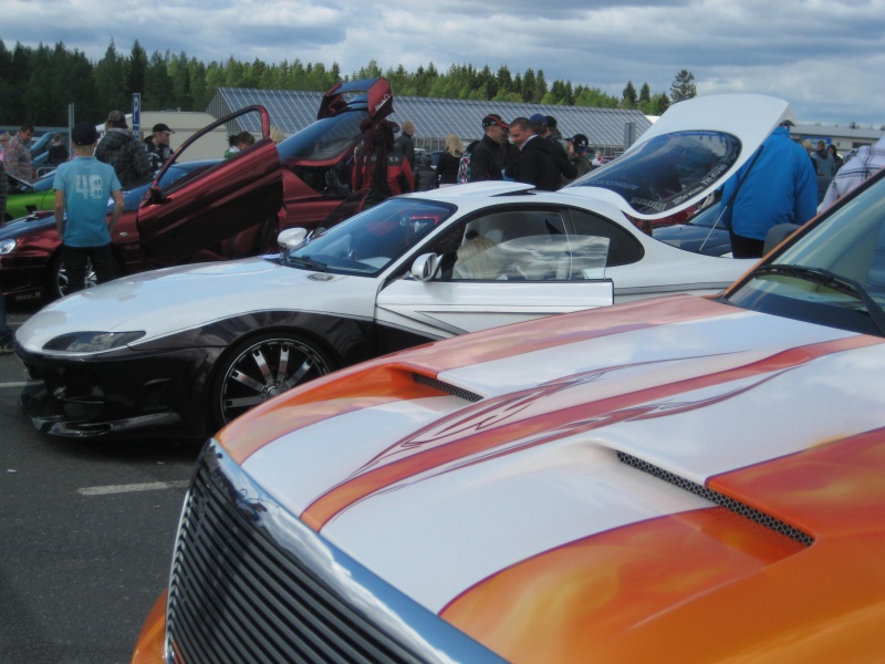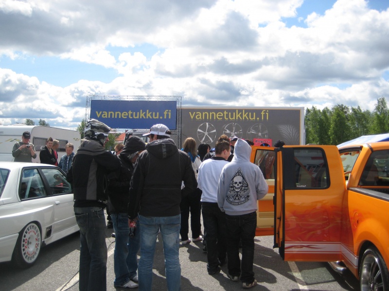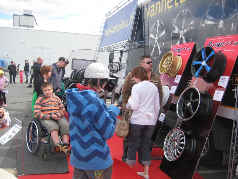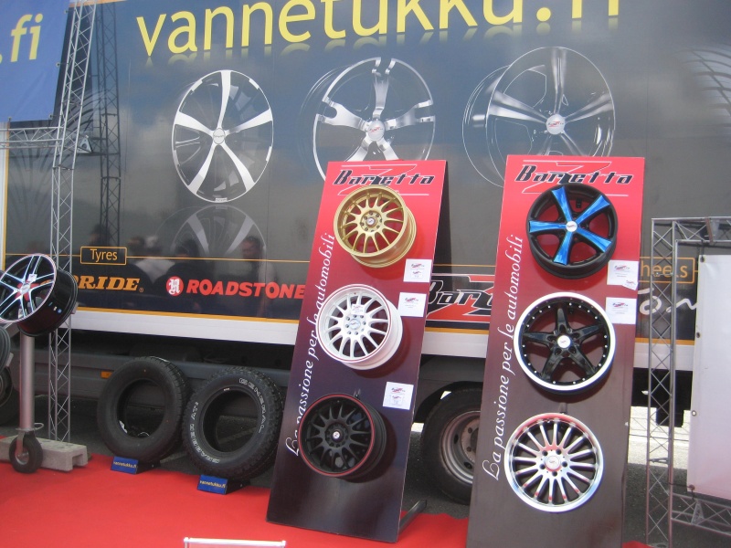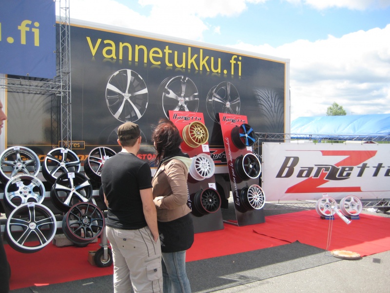 Taas oli Keskisen kyläkaupan parkkialueelle luotu hieno tuningtapahtuma ja mukana tietysti myös vannetukku.fi. Kun edelliskesänä saatiin nauttia auringosta ja lämpöasteista niin nyt lämpötila laski alle kymmenen asteen ja parkkialueen läpi puhaltava tuuli kangisti kyllä kuumaverisimmätkin tuningheebot. Autot olivat kyllä komeita ja upeita olivat myös Barzetta- tytöt Jonna ja Hanna jotka saivat hieman verta lämpenemään ja ystävällisesti jakoivat vannetukun informaatiota ja ohjasivat yleisöä tutustumaan vanneuutuuksiin. Yleisön suosikiksi muodostui jälleen Barzetan Granturismo joka väripuolineen lämmitti myös naispuoleista tuning-kansaa. Tapahtuman ajankohta samalle viikonlopulle koulun päättäjäisjuhlien kanssa laski kyllä hieman kävijämäärää mutta väkeä riitti silti lähes edellisvuoden malliin. Paikalle lensi myös kaikille tuttu supersankari, Teräsmies, joka pelkällä olemuksellaan piti konnat ja pahikset poissa. Teräsmiehen suosikkivanne oli muuten kuvassakin esiintyvä kevään uutuus, Competizione Black.